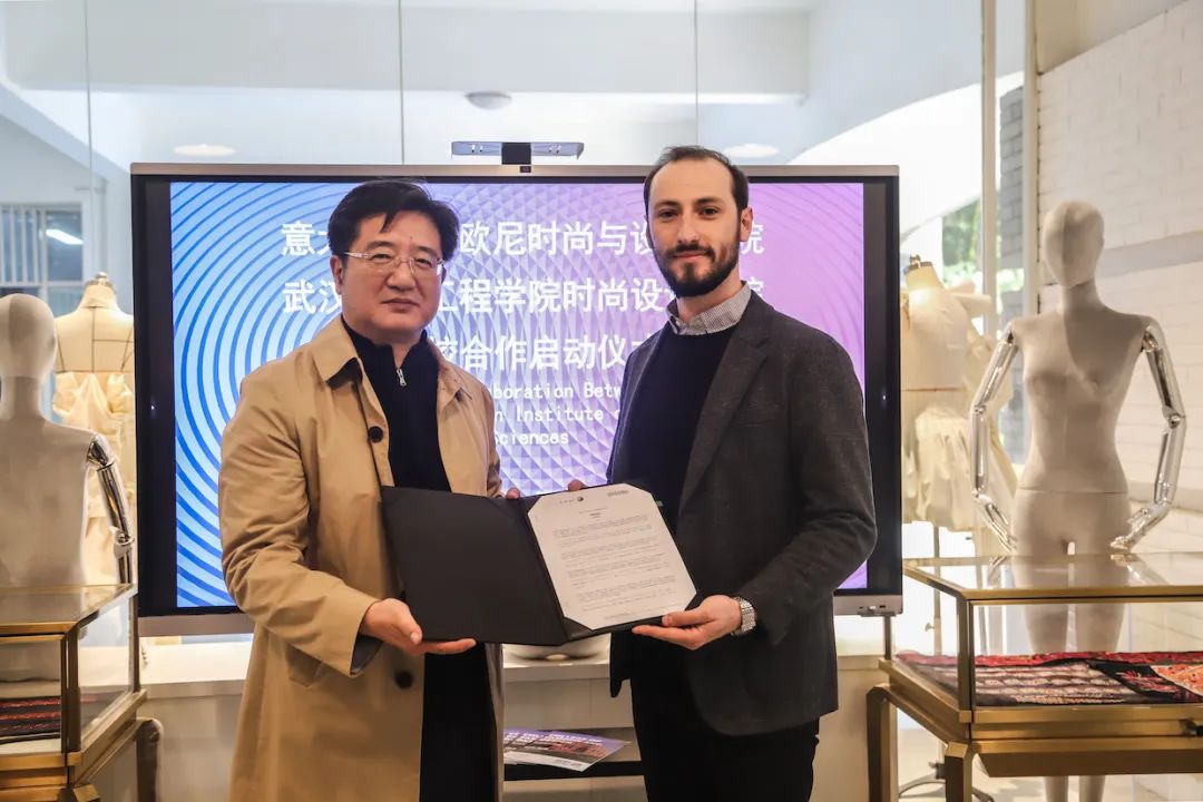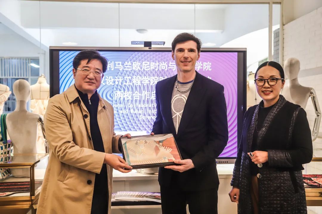 董事长程凡先生和马兰戈尼亚太及中华地区招生总监Leonardo进行了两校合作的签约仪式,并赠送员工的原创设计作品。