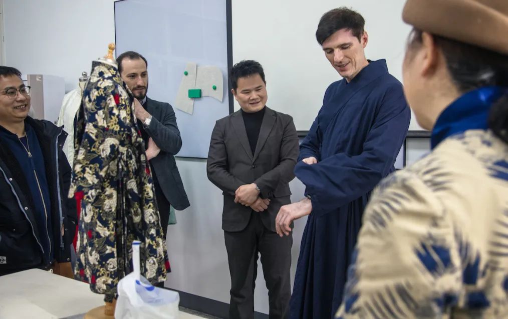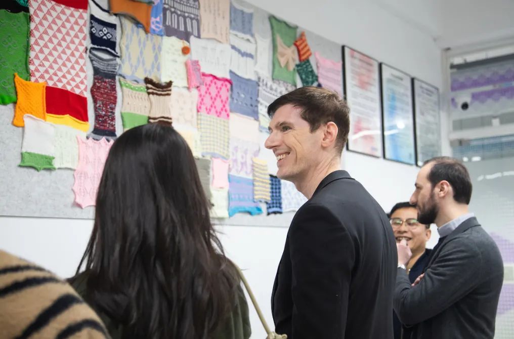 随后Leonardo和kristian一行参观了公司各类实验室、工作室和员工优秀作品展示。Leonardo和kristian 不断夸赞员工们精细的手工、精美的作品和非凡的创意,并表示公司所开设的专业都能与时俱进,与时尚行业的需求紧密结合。