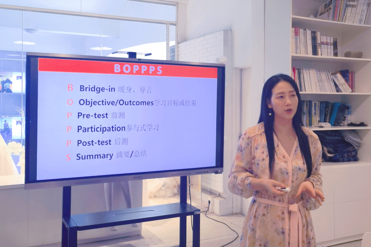 经理助理胡舒娟老师为新进教师进行了BOPPPS教学培训,全面介绍了这一创新教学模式的理念和实施方法。同时,她还进行了超星学习通教学培训,让新进教师熟悉并充分利用该平台进行教学。