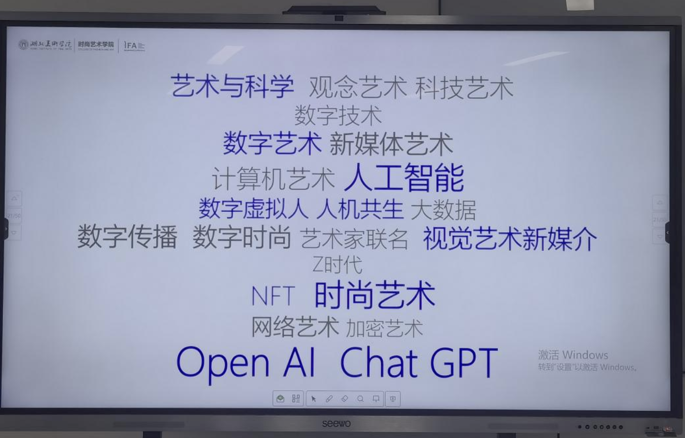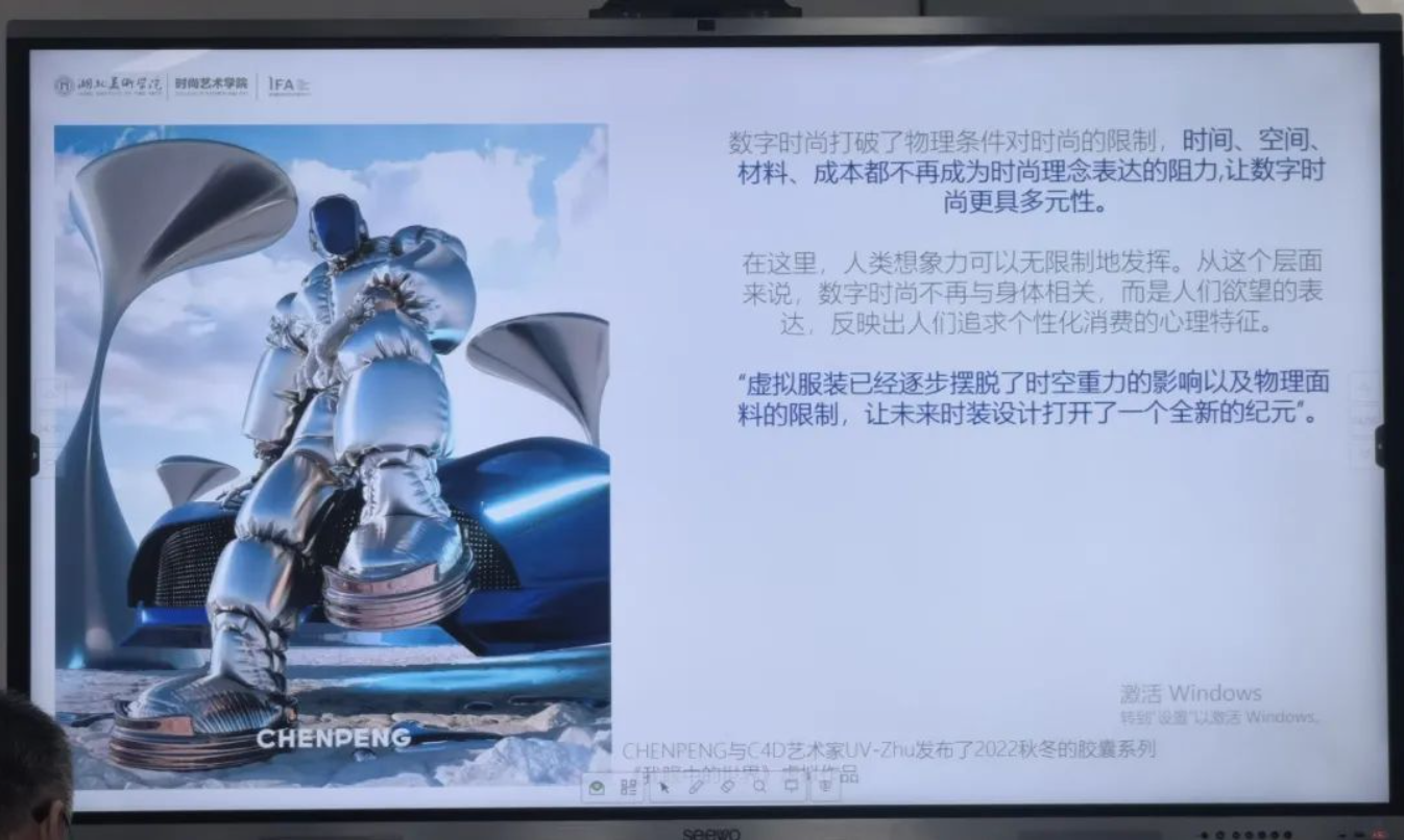 在此次讲座中,李海兵教授分别从“数起源,进行时,新生态”三个层面为大家介绍了数字与时尚艺术之间的关系,带领大家追溯1960年“数字艺术”的诞生,从2006年“Alexander McQueen”的数字秀场,到2019年全球第一件虚拟服装“虹彩(lridesscence)”的问世,再到2023年首届“AI FASHION WEEK纽约时装周”,通过大量的艺术家作品及案例向我们展现了数字化带给时尚和艺术的革新,数字时尚能够打破物理界限,与不同的行业融合发展给我们带来众多惊喜。