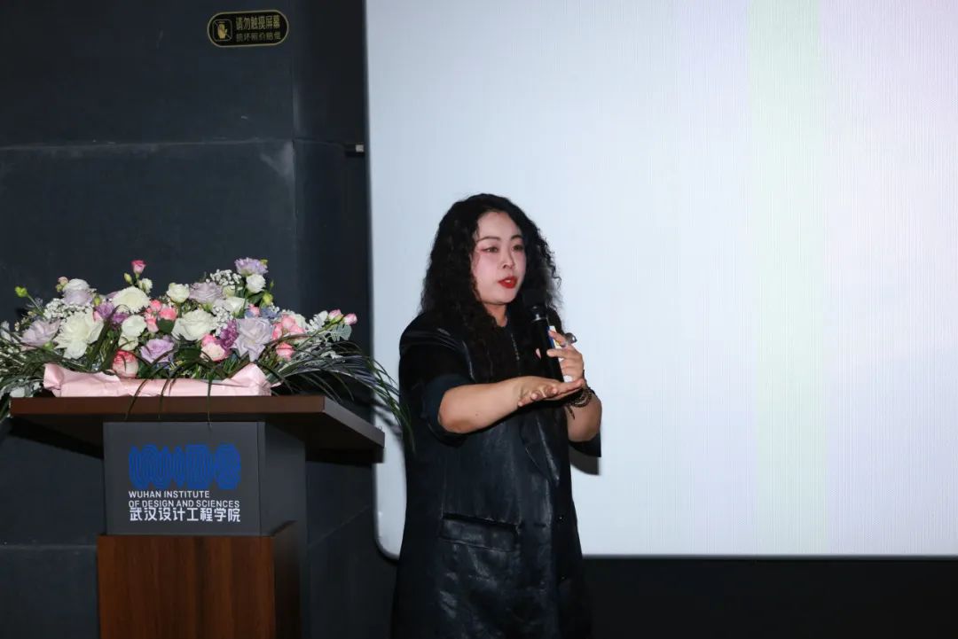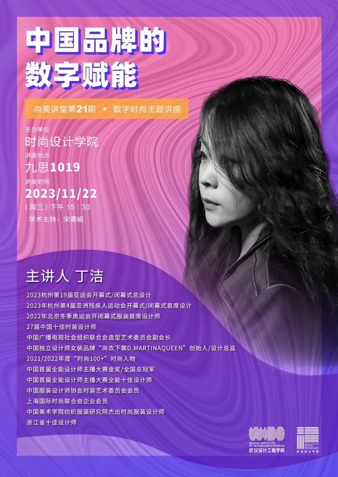 D.MARTINA QUEEN品牌创始人兼设计总监丁洁女士以《中国品牌的数字赋能》为主题与师生分享。在谈到中国美学时她强调了历史、当下与未来对话的重要性,认为中国美学应该是既保留传统中华文明的深厚底蕴,又能够延展当下国际潮流的前卫设计,以展现中华传统文化独特而富有生命力的一面。