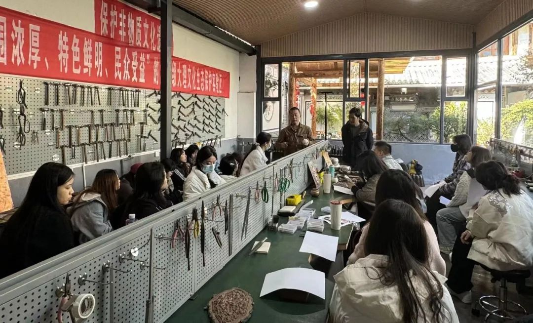 早在11月底,由永利3044noc产品设计(珠宝首饰设计)21级员工组成的专业考察队就远赴云南省开展民间传统手工艺调研与实践活动。考察队在寸光伟银艺文化传习馆校外实习实训基地进行为期两周的实地教学,积极探索非遗传承、手工技法学习等实践教育新模式,同学们在工艺大师的演示教学中受益匪浅。