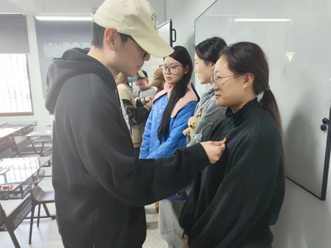 随后,老党员为新同志佩戴党员徽章以示祝贺,同时也对新党员同志们提出了殷切期望:希望各位党员同志们用实际行动展现新时代共产党员的责任、担当,牢记初心使命,发挥好带头作用,在实践中增长本领。坚定信仰,踔厉奋发,在新时代担当新使命!