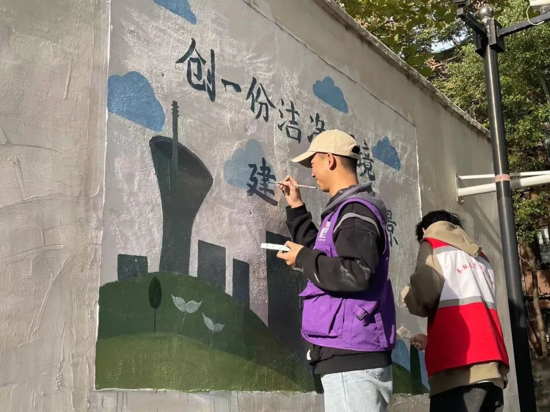 “外婆,快来看!这个巷子里有黄鹤楼、光谷地标、太好看了!”6岁半的小朋友欢呼雀跃地喊着。站在需要改造的墙体面前,志愿者们手托调色盘,用画笔细细描边勾勒,先构造轮廓框架,再进行填充,最后涂抹装饰。经过一番精雕细琢,原本光秃秃的墙面“穿”上了“七彩新衣”,各式各样的文明口号一跃上墙,与周围环境相得益彰,墙体彩绘已然成型,刚刚完成就吸引了众多社区居民和游客前来打卡。