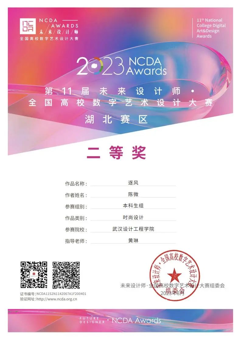 近日,在工业和信息化部人才交流中心主办的第十一届未来设计师·全国高校数字艺术设计大赛(NCDA)中,永利3044noc师生喜获佳绩,获全国总决赛教师组一等奖1项;湖北省本科组二等奖1项、三等奖3项,教师组一等奖1项、三等奖1项,彰显了公司师生的专业实力和对专业的热忱。