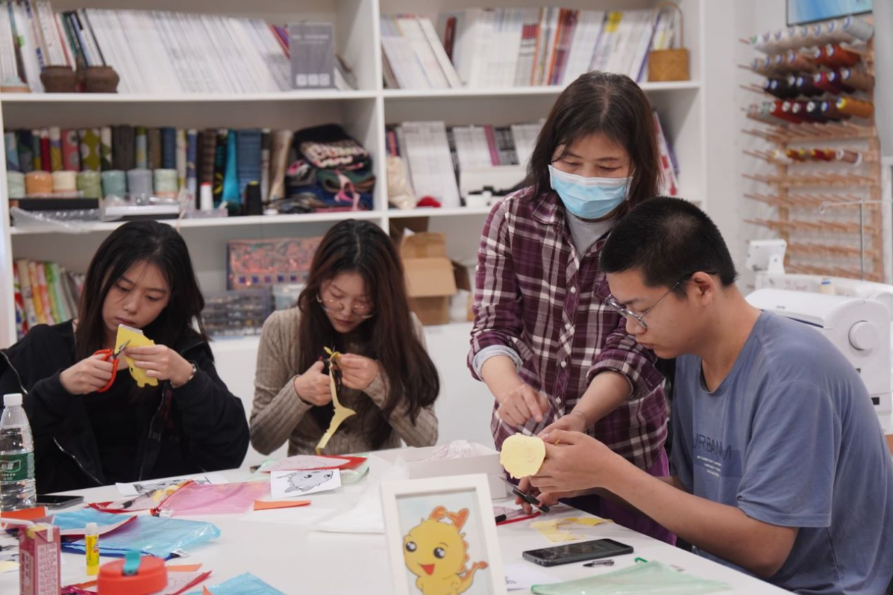 本次活动分为“文化讲座”与“非遗工艺体验”两个部分。在文化讲座中王传芬教授分享了自己对“非遗”的独特理解:“非遗是活着的艺术,它承载着中华民族的精神与情感,是千百年来中国艺术繁荣的体现。”她强调,一代代手艺人用匠心坚守着这份活着的艺术,而匠心正是敬业与精业的完美统一。随后,在谈到“楚风布画”时,王传芬教授详细讲解了其相关工艺制作的知识。她指出,布贴画的特点是以剪为笔,用面料为色。在她看来,剪刀不再是简单的工具,而是创造美的画笔;面料则是创造美的颜料。