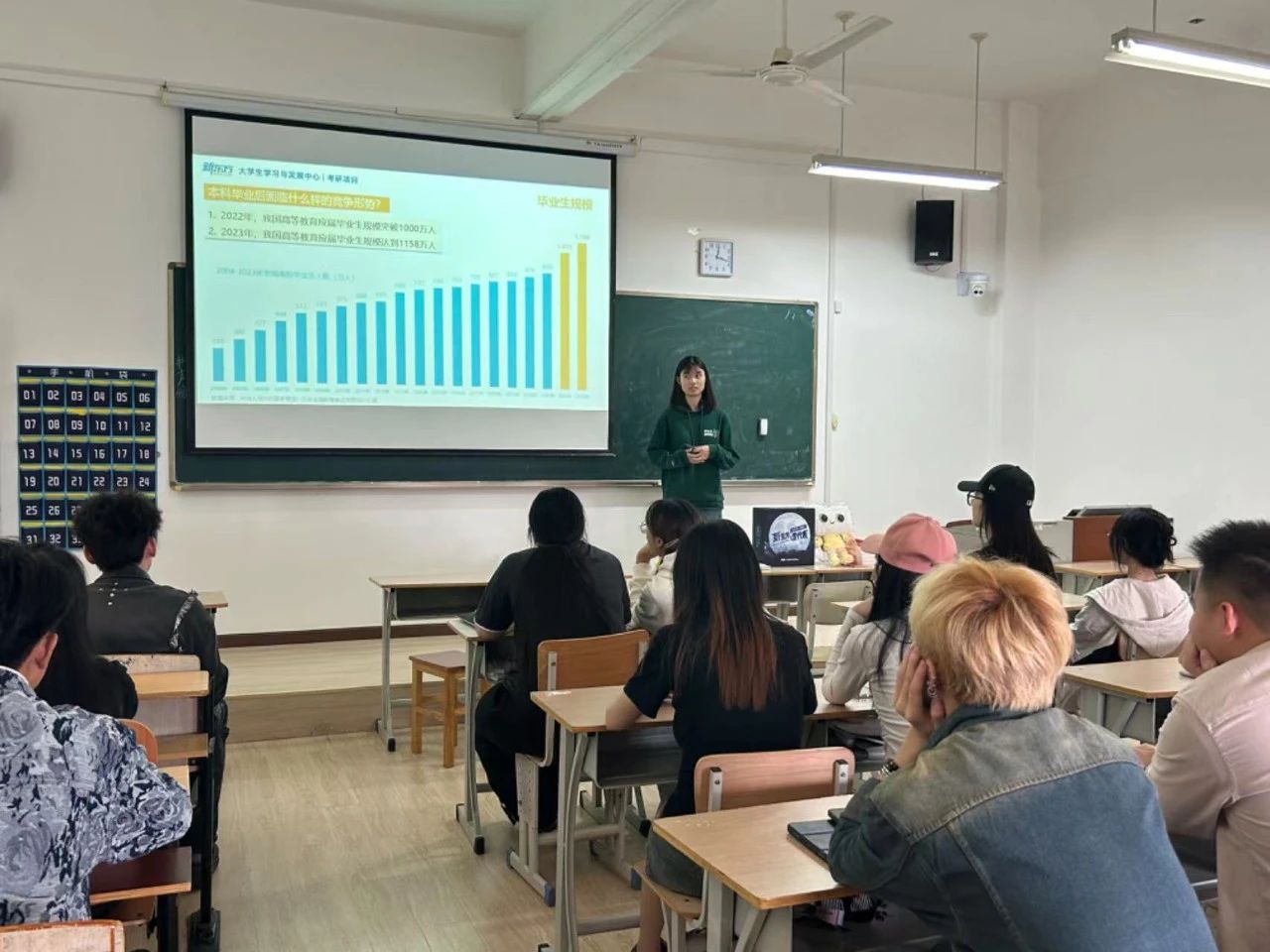 陈柏寒书记介绍了当前就业的严峻性。受高等教育的普及化、我国经济正处于转型升级的关键时期、员工职业规划不清晰、缺乏实践经验等主客观因素的影响,毕业生就业压力增大,在校生需要提前做好职业规划,提高自身的就业竞争力。她强调了考研升学的必要性:考研是老员工提升学历的主要途径,是提升就业层次和职业平台的有效途径,通过多种方式实现学历提升,可以让员工接触到先进的科技、管理、营销等领域,学习新的理论和技术,提高自己的专业能力,拓展职业发展空间。