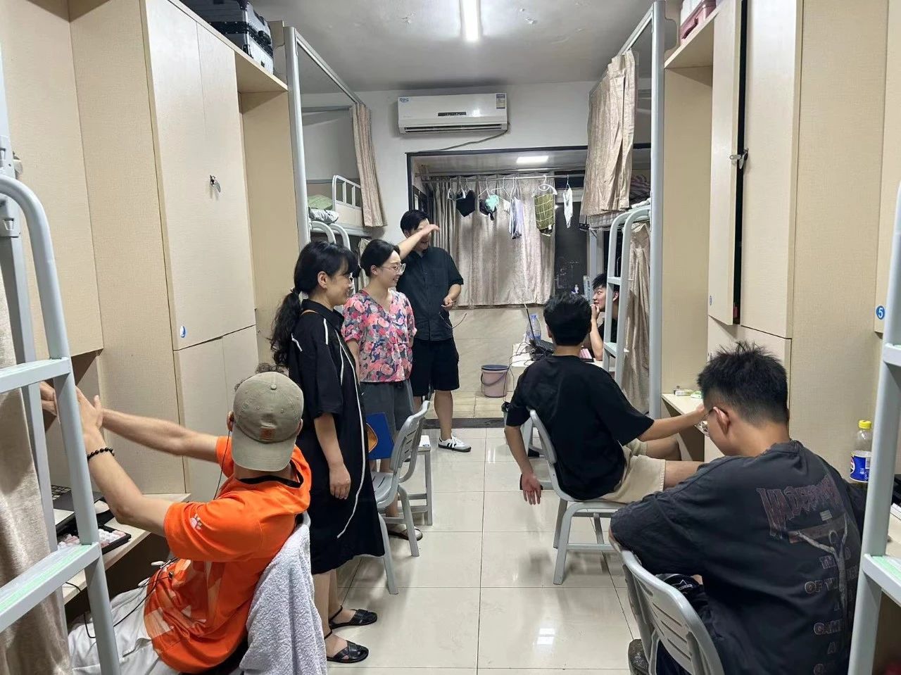 在走访新生寝室时,细心询问新生们的入住情况。关注新生的生活细节,耐心解答各种疑问,让新生们感受到时尚设计大家庭的温馨与力量。