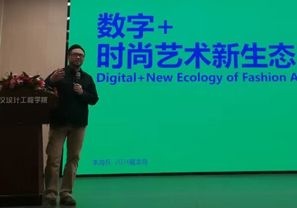 李海兵经理在讲座中深入探讨了数字技术如何与时尚艺术相结合,展示了数字化设计创作的全过程,并通过生动案例分享了数字+机能艺术装置、数字+模块化设计及数字+虚拟时装等时尚现象。带领大家追溯了数字艺术的历史,从1960年的“数字艺术”诞生,到2006年Alexander McQueen的数字秀场,再到2019年全球首件虚拟服装“虹彩(Iridescence)”的问世,直至2023年首届“AI FASHION WEEK纽约时装周”。这些案例展示了数字化为时尚和艺术带来的革新,打破了物理界限,让不同产业能够融合发展,带来了众多惊喜。
