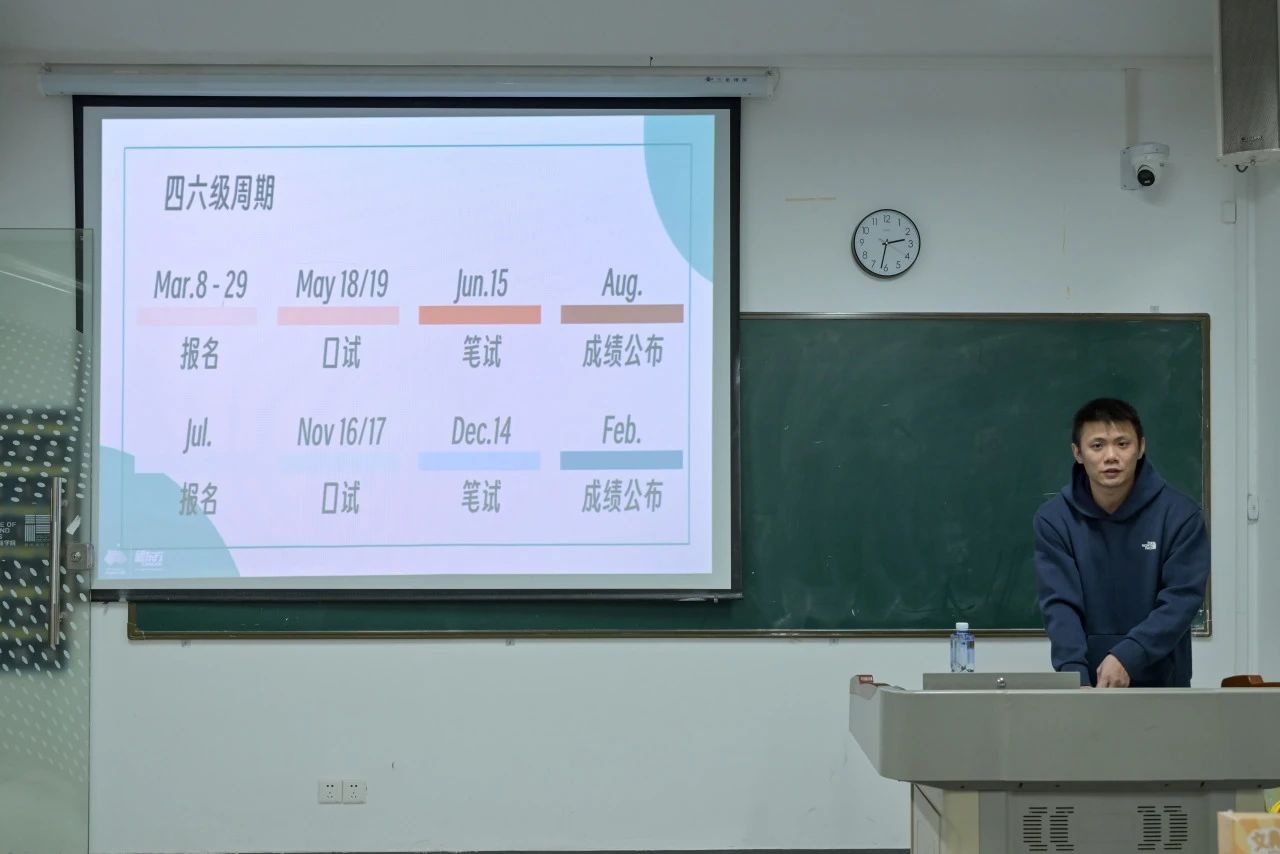 “工欲善其事,必先利其器”,为了给积极备考、全力冲刺下半年英语四六级考试的同学们提供有力的帮助与指导,提升员工的英语素养和应试能力,永利3044noc于12月2日下午在T3鹤鸣楼2089教室举办了2024下半年大学英语四六级备考讲座。本次讲座邀请了新东方教育英语四六级项目组讲师、华中科技大学英语专业硕士谢天老师进行授课,针对四六级考试的各项重点内容进行了详细讲解,吸引了公司各年级员工参与。