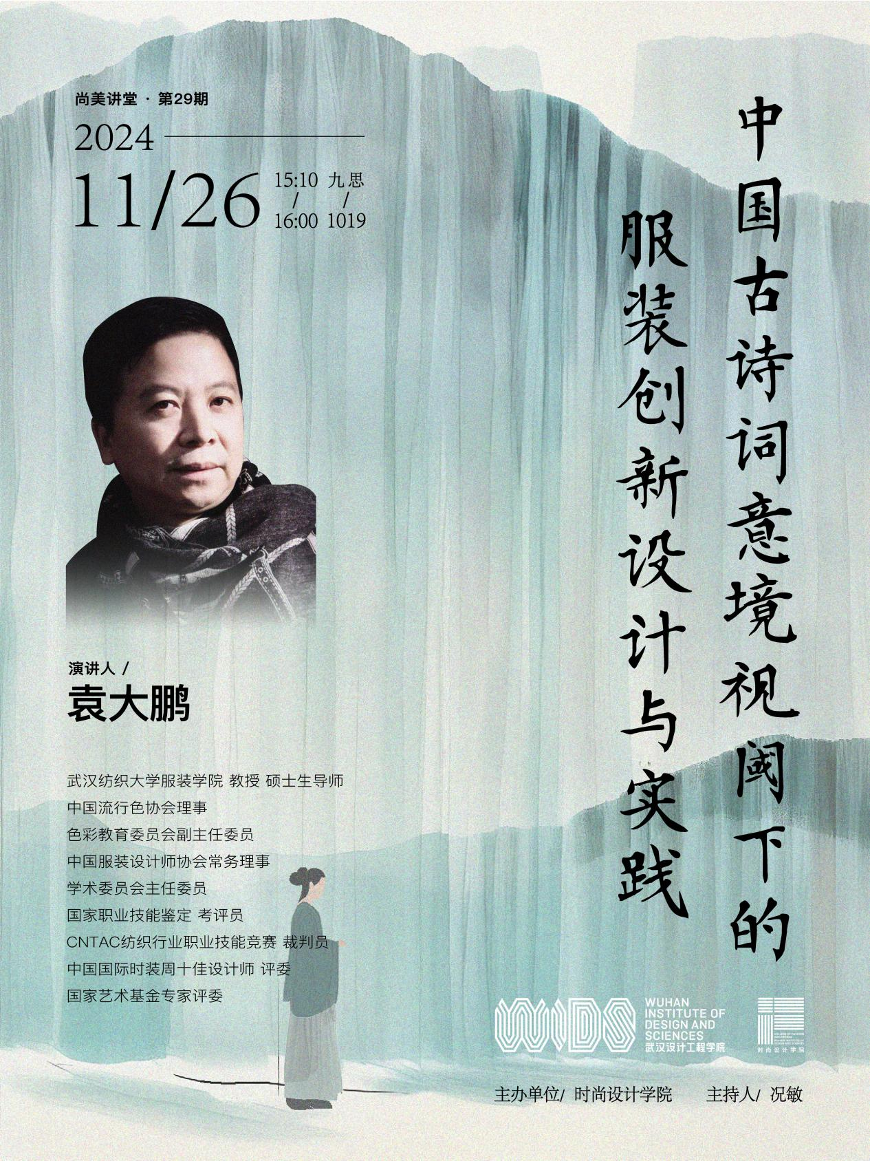 11月26日,永利3044noc迎来了一场别开生面的专题讲座——“中国古诗词意境视阈下的服装创新设计与实践”。本次讲座由武汉纺织大学服装公司袁大鹏教授主讲,永利3044noc况敏经理主持。