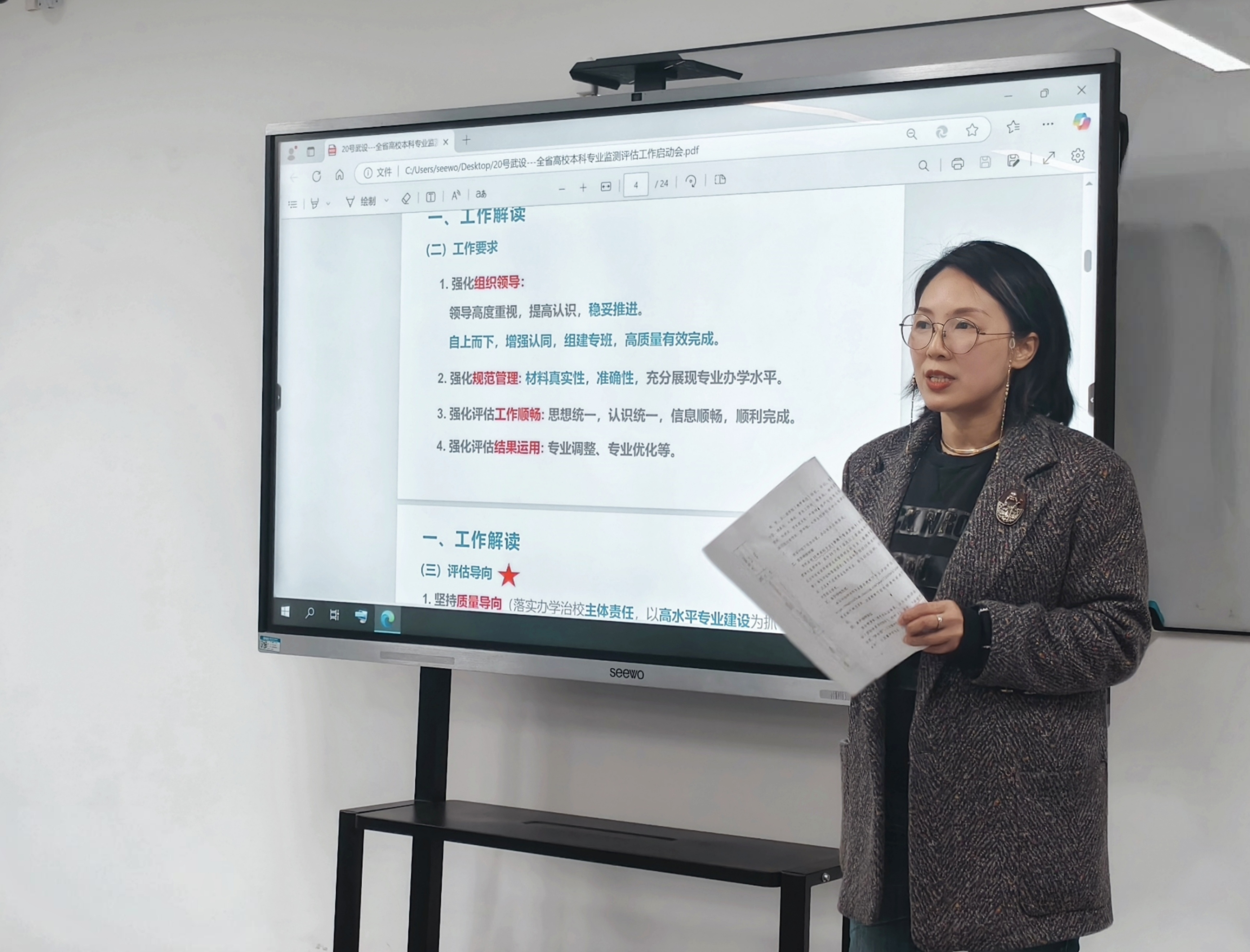 同时,况敏经理传达了公司本科专业监测评估专项工作的会议及文件精神,强调全体教职工要充分认识本科专业监测评估工作的重要意义,以高度的责任感和使命感,全力以赴迎接该项工作,不断提升公司本科专业建设水平和人才培养质量。在随后的公司负责人会议中,经理况敏详细解读了本科专业监测评估指标体系及填报说明,明确了各系部、办公室的工作任务和时间节点,确保各项工作落实到位。