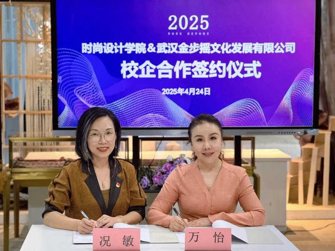 在热烈的氛围中,双方举行了校企合作协议签订仪式。永利3044noc经理况敏与金步摇文创创始人、董事长兼创意总监万怡分别代表双方签署协议。