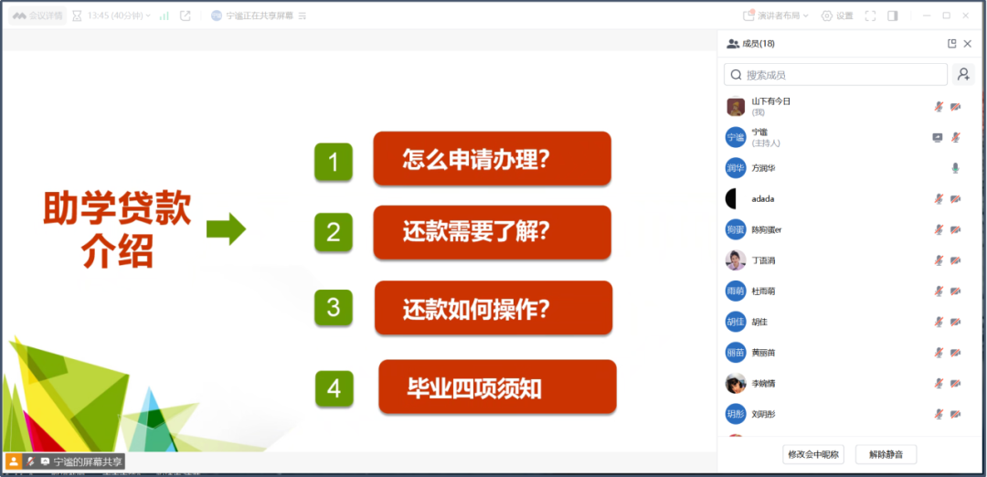 会议开始,方润华老师详细讲解了助学贷款的还款流程、还款期限及注意事项,并结合实际案例,强调按时还款的重要性。同时,现场演示了线上还款操作步骤,帮助员工熟悉还款系统,避免因操作失误导致逾期。