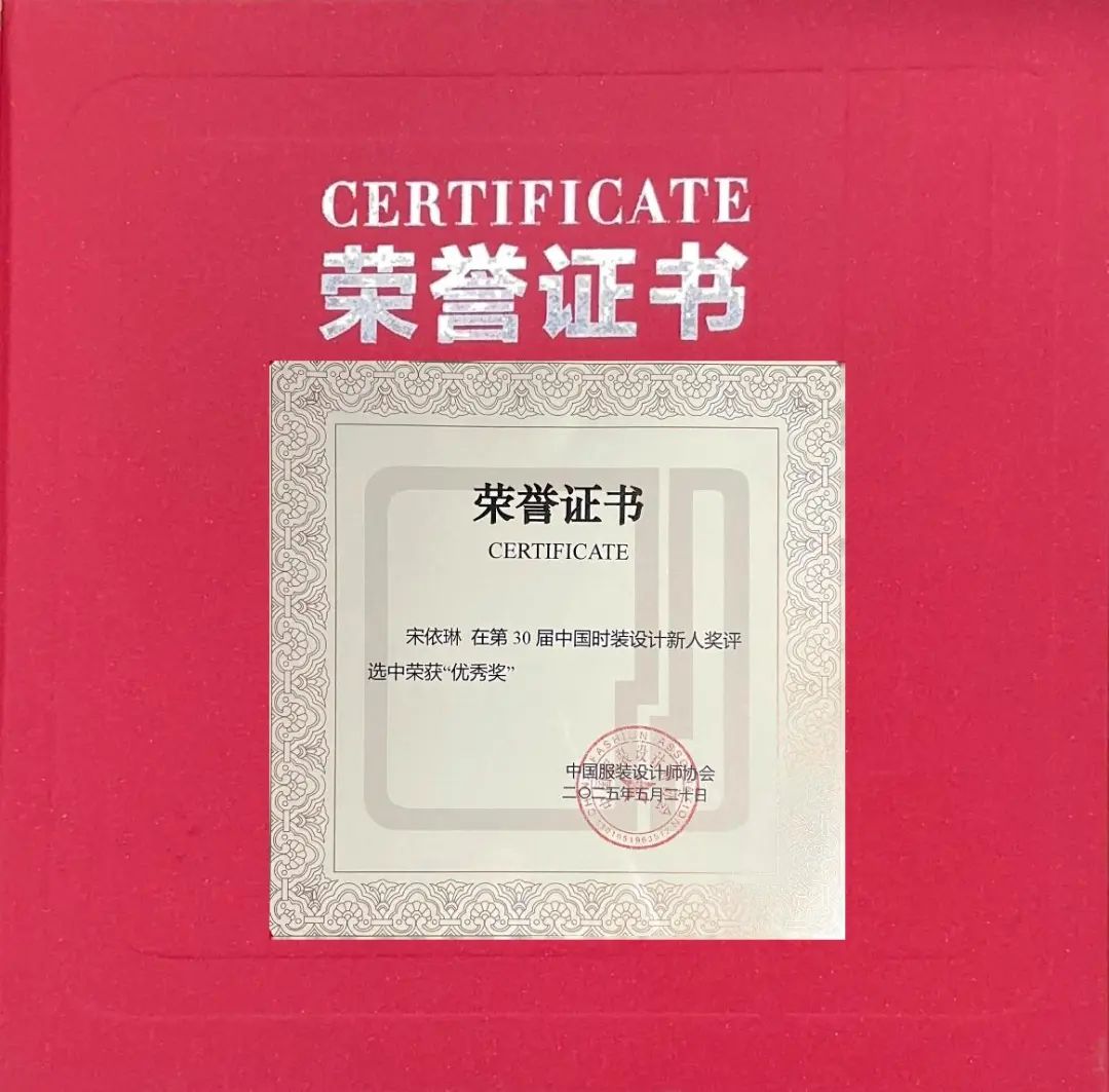 经过5月19日在北京举行的现场命题手绘测试、现场立裁终评考核及服装实物答辩终评环节。最终,经过层层筛选与激烈角逐,公司员工宋依琳以总成绩排名第十八荣获第30届中国时装设计新人奖“优秀奖”。