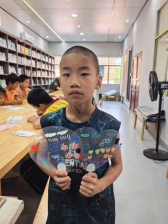 绘扇环节,空白扇面成画布。孩子们以笔为媒,蘸取颜料,绘出繁花、云朵,还有奇思妙想的图案。扇子轻摇,微风轻拂,带着童趣。这不仅是手工成果,更是独属于夏天、独属于他们的艺术珍藏。