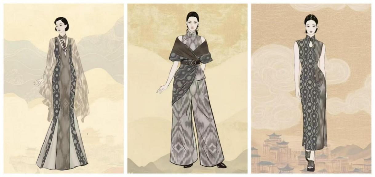赛事吸引了全国118所高校和28位独立设计师的踊跃参与,共收到1128件参赛作品。经过两轮激烈的评选,最终有39位设计师的40组作品进入决赛,120件原创设计集中展现了新疆非遗艾德莱斯技艺与海派旗袍文化及现代设计理念的深度融合。在周双老师的悉心指导下,陈霄月同学凭借其扎实的专业知识和独特的设计理念,将课堂所学化为实践之力,让设计理念在布料上生根发芽,最终在上海时装周的舞台上华丽绽放,这一成绩不仅是专业教学成果的有力见证,更是永利3044noc学子创新精神的最好诠释!
