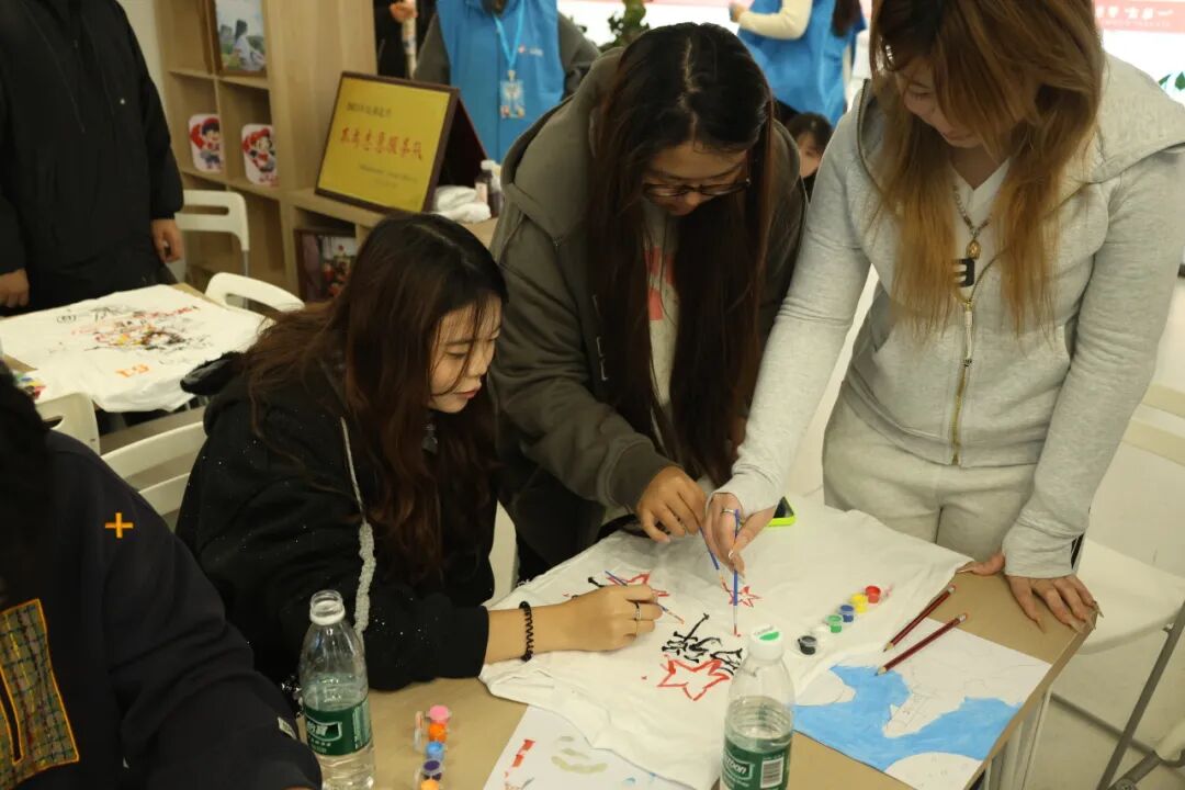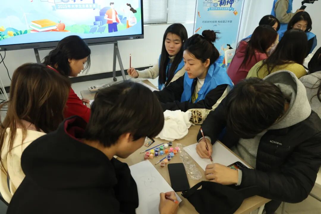 宣讲结束后,备受期待的“两弹一星”主题文化衫创意实践环节正式开启。同学们以2-3人为一组,领取定制颜料、空白T恤等物料,将心中感悟转化为可视化的设计语言。