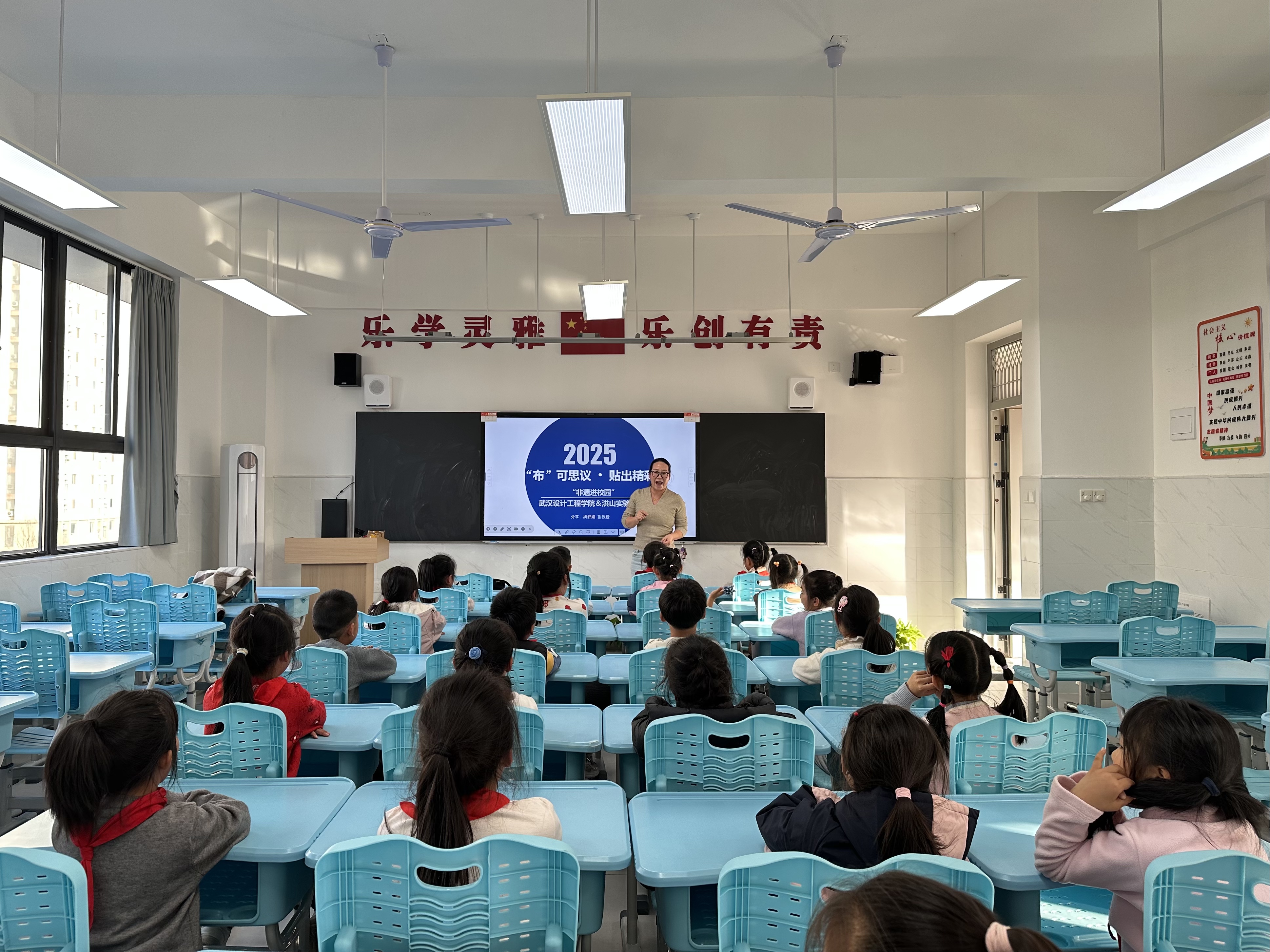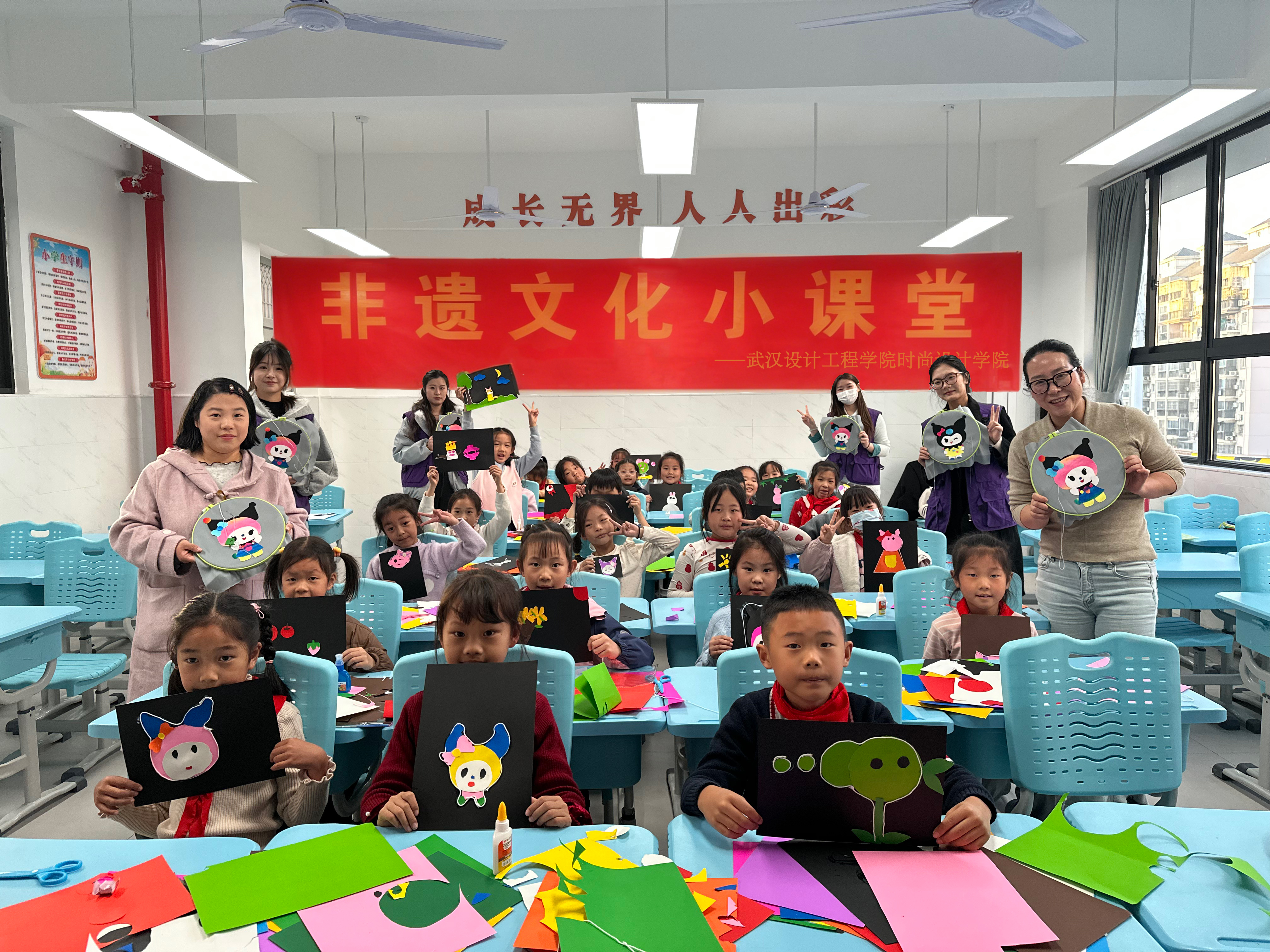 为进一步推动非物质文化遗产的传承与普及,让传统文化在青少年心中扎根发芽,11月26日,永利3044noc非遗研究中心副主任胡舒娟、辅导员荣嘉奇带队,组织员工志愿者团队赴武汉市洪山实验小学,开展了一场以“布可思议,贴出精彩”为主题的阳新布贴文化小课堂活动。本次活动通过生动有趣的教学与实践,让孩子们近距离感受非遗文化的独特魅力,在欢声笑语中开启了一场别开生面的传统文化之旅。
