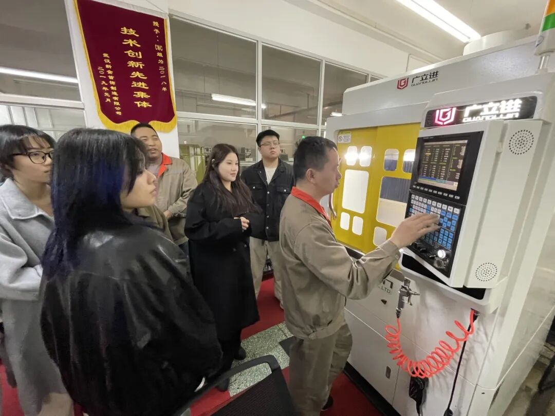 入职活动结束后,在新金珠宝人力资源部杨昀的带领下,实习生前往新金珠宝制造产业进行实地参观。杨老师讲解了黄金制作的完整生产模式,现场解答同学们的疑问。同学们近距离了解生产实操,深入认识了从设计图纸到实体产品的转化过程,为后续岗位实习奠定了坚实基础。