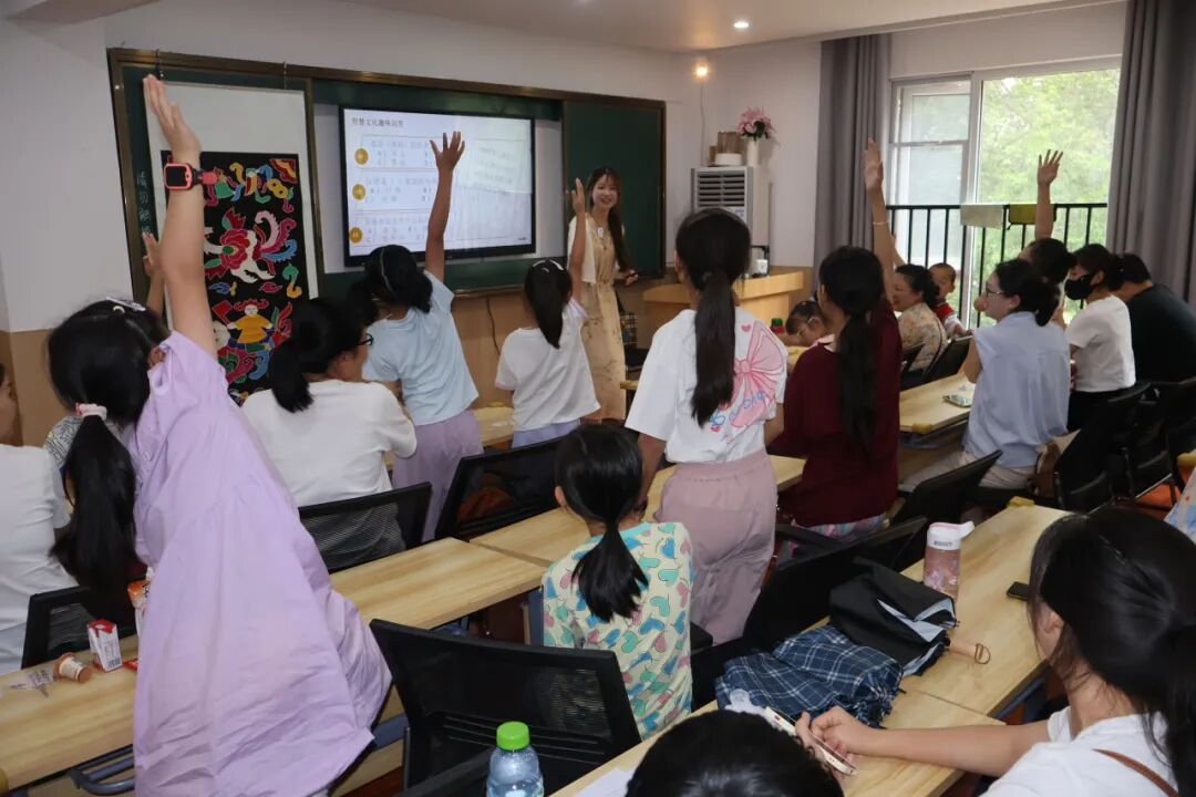 文化讲堂环节,员工志愿者化身“非遗讲解员”,详解两项非遗技艺的文化内涵与艺术特色:“汉绣气势磅礴,以‘平金夹绣’显富丽;阳新布贴稚拙天成,靠剪样拼贴成浮雕质感。” 志愿者还结合实物,讲述阳新布贴从汉代妇女裁衣边角料创作,到跨越 1500 余年入选国家级非遗名录的历程,让居民深刻体悟楚风韵味。互动问答环节中,小朋友们踊跃抢答,答对者获荆楚文创小礼品,现场氛围热烈。
