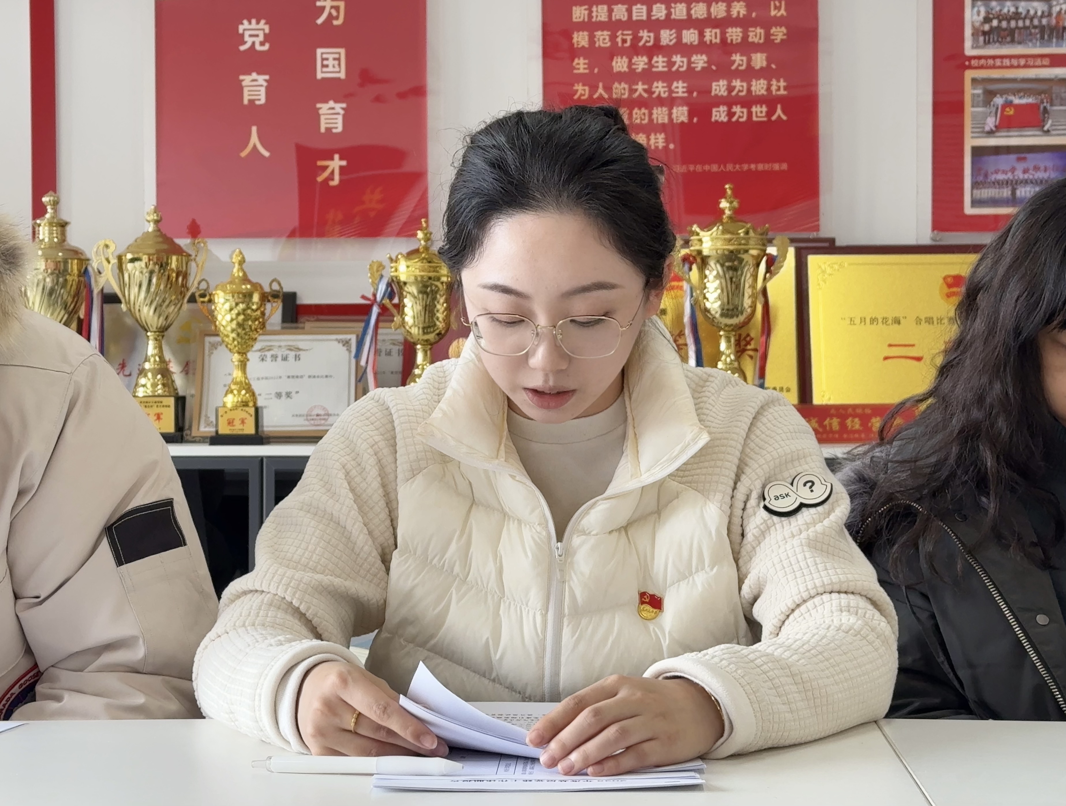 会上,按照会议安排,公司党总支副书记况敏、教师第一党支部书记程雪、教师第二党支部书记徐立楠、员工第一党支部书记马昀芸、员工第二党支部书记张昊依次进行述职。各位书记围绕2025年度基层党建工作开展情况,重点就2025年度基层党建主要工作、存在的突出问题及下一步工作打算进行了全面汇报,系统总结了一年来抓基层党建工作的实践成果和经验做法。